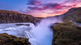 Ruta del Círculo Dorado. Visita a la cascada Gullfoss, el campo geotérmico de Geysir y el Parque Nacional Thingvellir, Patrimonio de la Humanidad, donde se encuentran las placas tectónicas de Eurasia y América del Norte.